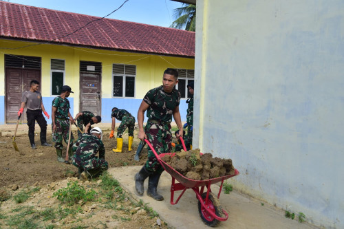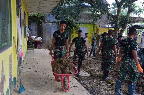 Subsatgas 2/Hiu Latsitarda Nusantara ke-46 melaksanakan kegiatan pembersihan di TK Al-Ahnat, Kecamatan Manyak Payed, Kabupaten Aceh Tamiang. Kegiatan ini dilakukan di lokasi fasilitas pendidikan yang terdampak bencana alam sebagai bentuk kepedulian dan pengabdian kepada masyarakat.