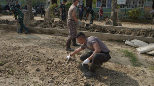Subsatgas 2/Hiu Latsitarda Nusantara ke-46 melaksanakan kegiatan pembersihan di SD Negeri 1 Tualang Cut, Kecamatan Manyak Payed, Kabupaten Aceh Tamiang. Kegiatan ini dilakukan di lokasi fasilitas pendidikan yang terdampak bencana alam sebagai bentuk kepedulian dan pengabdian kepada masyarakat.