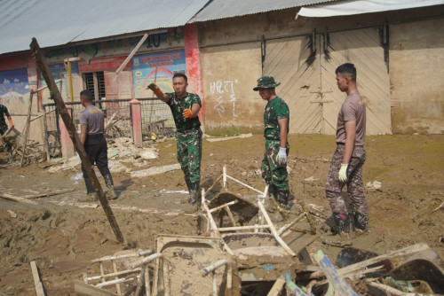 Subsatgas 4/Kijang Latsitarda Nusantara ke-46 melaksanakan kegiatan pembersihan di TK Pelangi Bukit Tempurung, Kecamatan Kuala Simpang, Kabupaten Aceh Tamiang, Sabtu (24/1/2026). Kegiatan ini dilakukan di lokasi sekolah yang terdampak bencana alam sebagai bentuk kepedulian dan pengabdian kepada masyarakat.