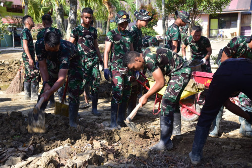 Subsatgas 2/Hiu Latsitarda Nusantara ke-46 kembali melaksanakan kegiatan pembersihan di SDN 1 Tualang Cut, Tualang baru, Kecamatan Manyak Payed, Kabupaten Aceh Tamiang. Kegiatan ini dilakukan di lokasi fasilitas pendidikan yang terdampak bencana alam sebagai bentuk kepedulian dan pengabdian kepada masyarakat.