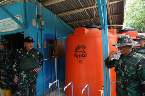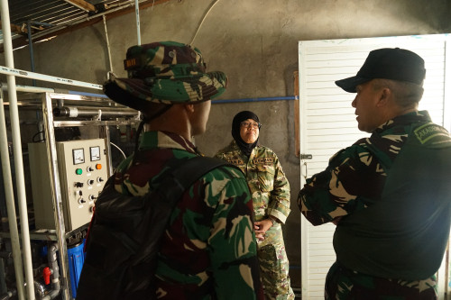 Danjen Akademi TNI Bersama rektor Unhan RI meninjau langsung progres pembuatan RO atau penjernihan air bersih yang dikerjakan Taruna dan Kadet, serta berinteraksi dengan pengurus ponpes tersebut dan memastikan kegiatan Latsitarda Nusantara ke-46 benar-benar memberi manfaat nyata bagi warga setempat.