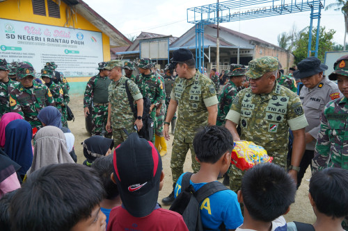 Kegiatan peninjauan diakhiri dengan penyerahan bantuan dari Wakasad bersama Asisten Perencanaan Umum (Asrenum) Panglima TNI kepada para siswa SD Negeri 1 Rantau Pauh sebagai bentuk kepedulian dan dukungan terhadap dunia pendidikan.