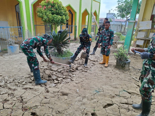 Taruna dan Kadet yang tergabung dalam Satuan Tugas Taruna (Satgastar) Latsitarda Nusantara ke-46 kembali melaksanakan kegiatan pembersihan di SMP Negeri 1 Manyak Payed, Kecamatan Manyak Payed, Kabupaten Aceh Tamiang, Kamis (29/1/2026).