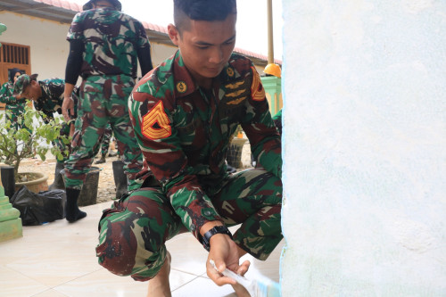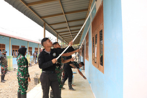 Taruna dan Kadet yang tergabung dalam Subsatgas 3/Elang Satuan Tugas Taruna (Satgastar) Latsitarda Nusantara ke-46 kembali melaksanakan kegiatan pembersihan dan pengecatan di MTs Al Ikhlas Tanah Terban, Desa Tanah Terban, Kecamatan Karang Baru, Kabupaten Aceh Tamiang.