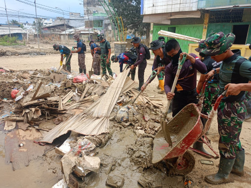 Taruna dan Kadet yang tergabung dalam Subsatgas 4/Kijang Satuan Tugas Taruna (Satgastar) Latsitarda Nusantara ke-46 kembali melaksanakan kegiatan pembersihan fasilitas umum di Panglima Polem, Kualasimpang, Kabupaten Aceh Tamiang.