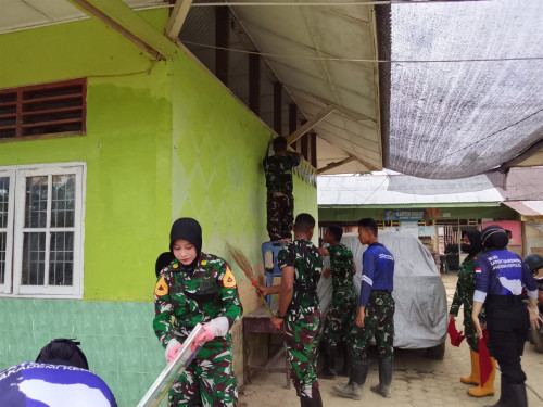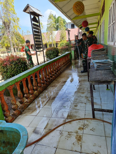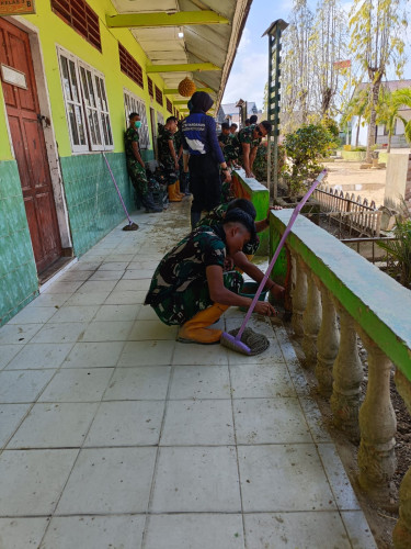 Taruna dan Kadet yang tergabung dalam Subsatgas 2/Hiu Satuan Tugas Taruna (Satgastar) Latsitarda Nusantara ke-46 kembali melaksanakan kegiatan pembersihan di SD Negeri 1 Tualang Cut, Kecamatan Manyak Payed, Kabupaten Aceh Tamiang.