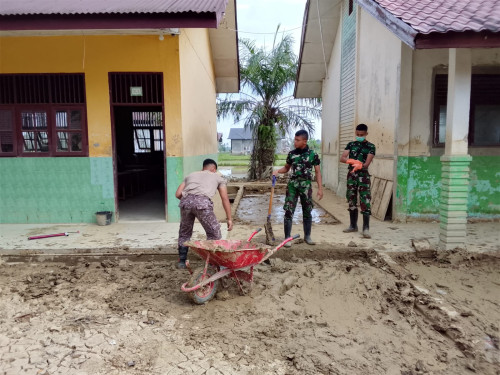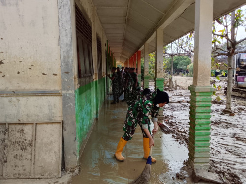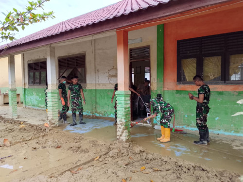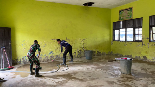 Kegiatan pembersihan difokuskan pada ruang-ruang kelas yang terdampak banjir. Taruna dan Kadet bersama warga sekolah membersihkan sisa lumpur dan kotoran yang masih menempel, guna memulihkan kondisi ruang belajar agar kembali layak dan nyaman digunakan dalam proses belajar mengajar.