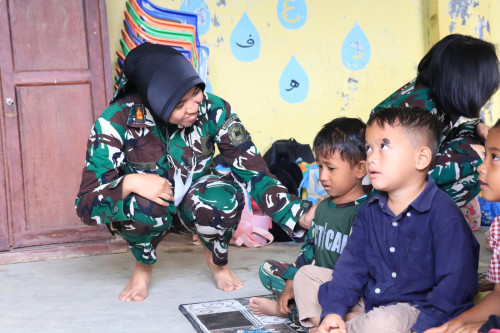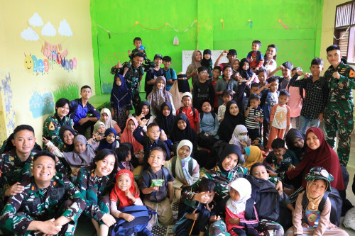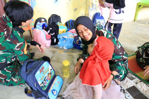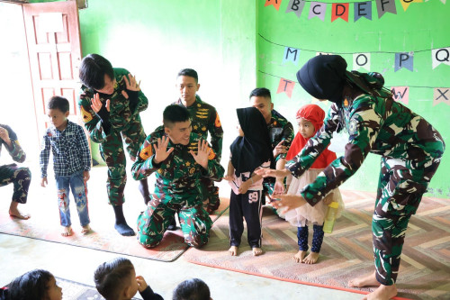 Taruna dan Kadet yang tergabung dalam Subsatgas 3/Elang Satuan Tugas Taruna (Satgastar) Latsitarda Nusantara ke-46 melaksanakan kegiatan trauma healing bagi anak-anak TK IT Alam Surya, yang berlokasi di Dusun Bahagia, Desa Tanah Terban, Kecamatan Karang Baru, Kabupaten Aceh Tamiang.