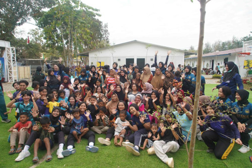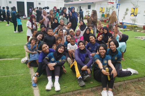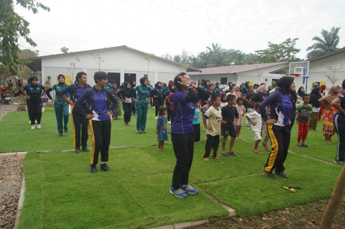 Taruna dan Kadet yang tergabung dalam Subsatgas 4/Kijang Satuan Tugas Taruna (Satgastar) Latsitarda Nusantara ke-46 melaksanakan kegiatan trauma healing bersama warga penghuni hunian sementara di Kualasimpang, Kabupaten Aceh Tamiang.