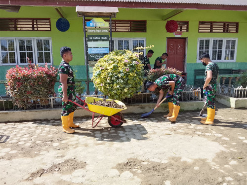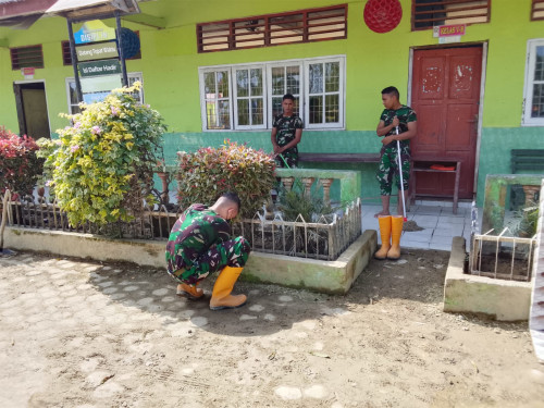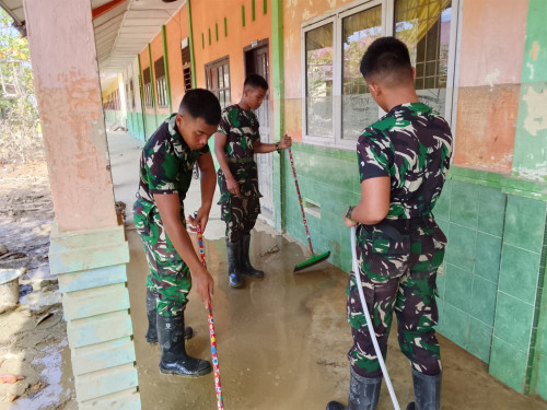 Subsatgas 2/Hiu Latsitarda Nusantara ke-46 kembali melaksanakan pembersihan di SD Negeri 1 Tualang Cut, Kecamatan Manyak Payed, Aceh Tamiang. Kegiatan pembersihan di fokuskan ke sisa materil lumpur mengeras di luar kelas, pembersihan ubin di depan kelas, dan merapihkan taman kecil depan kelas.