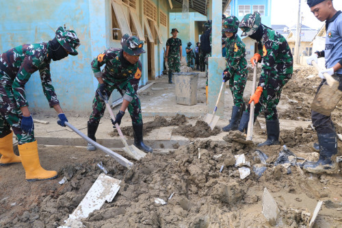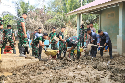 Subsatgas 3/Elang Latsitarda Nusantara ke-46 kembali melaksanakan pembersihan di SMP Islam Terpadu (IT) Syuhada, Kecamatan Karang Baru, Aceh Tamiang. Kegiatan pembersihan di fokuskan ke sisa materil lumpur mengeras di luar kelas dan halaman Sekolah