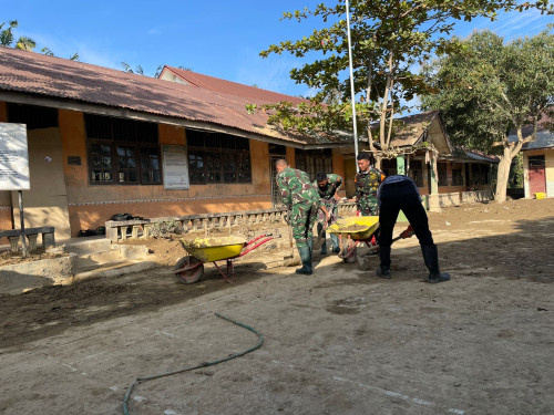 Subsatgas 3/Elang Latsitarda Nusantara ke-46 kembali melaksanakan pembersihan di SD Negeri Air Tenang, Tanah Terban, Kecamatan Karang Baru, Aceh Tamiang. Kegiatan pembersihan di fokuskan ke sisa materil lumpur mengeras di luar kelas dan halaman Sekolah