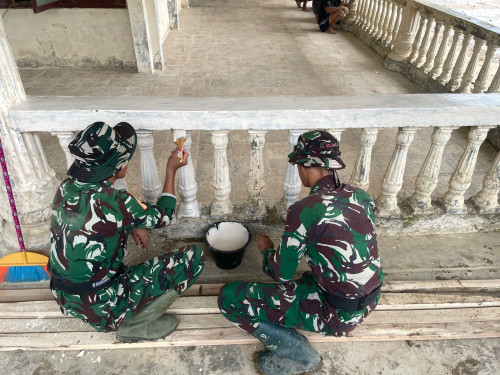 Taruna dan Kadet yang tergabung dalam Satuan Tugas Taruna (Satgastar) Latihan Integrasi Taruna Wreda Nusantara (Latsitarda Nusantara) ke-46 melaksanakan kegiatan pengecatan fasilitas di TK Aisyiyah Bustanul Athfal (ABA), Kecamatan Rantau, Kabupaten Aceh Tamiang.