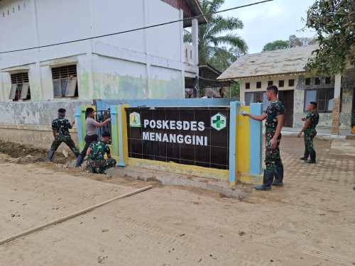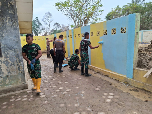 Taruna dan Kadet yang tergabung dalam Satuan Tugas Taruna (Satgastar) Latihan Integrasi Taruna Wreda Nusantara (Latsitarda Nusantara) ke-46 melaksanakan kegiatan pengecatan fasilitas pelayanan kesehatan di Pos Kesehatan Desa (Poskesdes) Menanggini, yang berlokasi di Kampung Menanggini, Kecamatan Karang Baru, Kabupaten Aceh Tamiang.