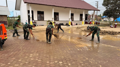 Taruna dan Kadet yang tergabung dalam Sub Satuan Tugas (Subsatgas) 2/Hiu Satuan Tugas Taruna Latihan Integrasi Taruna Wreda Nusantara (Satgastar Latsitarda Nusantara) ke-46 melaksanakan kegiatan pembersihan SD Negeri 1 Tualang Cut Manyak Payed.