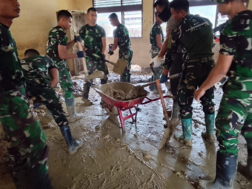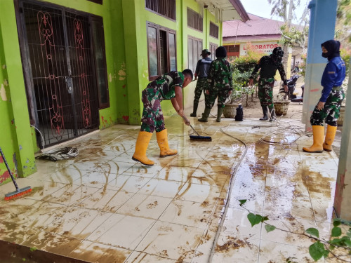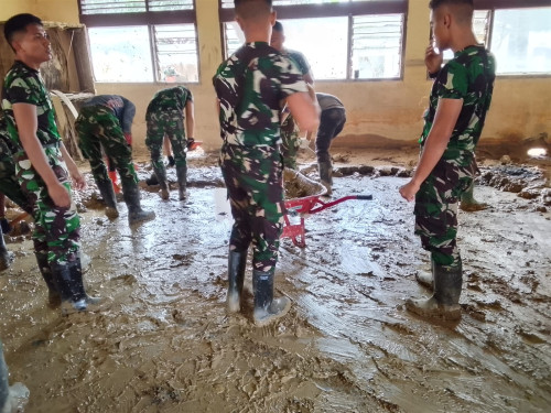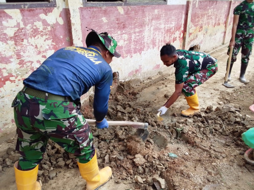 Taruna dan Kadet yang tergabung dalam Sub Satuan Tugas (Subsatgas) 1/Macan Satuan Tugas Taruna Latihan Integrasi Taruna Wreda Nusantara (Satgastar Latsitarda Nusantara) ke-46 melaksanakan kegiatan pembersihan di SMP Negeri 1 Manyak Payed