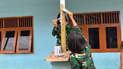 Taruna dan Kadet yang tergabung dalam Sub Satuan Tugas (Subsatgas) 3/Elang Satuan Tugas Taruna Latihan Integrasi Taruna Wreda Nusantara (Satgastar Latsitarda Nusantara) ke-46 melaksanakan kegiatan pengecetan di MTS Al Ikhlas Tanah Terban.