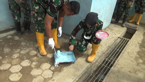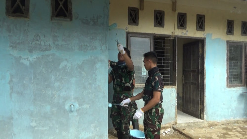 Taruna dan Kadet yang tergabung dalam Sub Satuan Tugas (Subsatgas) 3/Elang Satuan Tugas Taruna Latihan Integrasi Taruna Wreda Nusantara (Satgastar Latsitarda Nusantara) ke-46 melaksanakan kegiatan pengecatan di Poskesdes Menanggini.