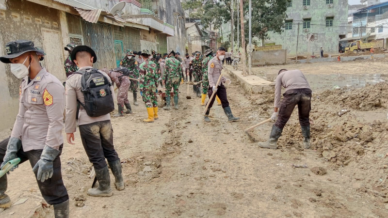 Taruna dan Kadet yang tergabung dalam Sub Satuan Tugas (Subsatgas) 4/Kijang Satuan Tugas Taruna Latihan Integrasi Taruna Wreda Nusantara (Satgastar Latsitarda Nusantara) ke-46 melaksanakan pembersihan di Dusun Amaliah, Kualasimpang.
