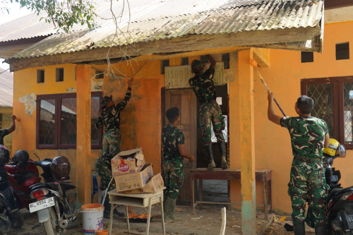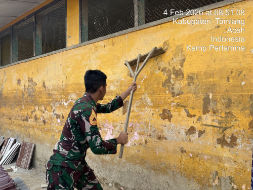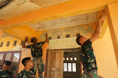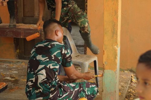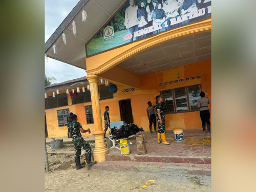 Subsatgas 1/Macan Satgastar Latsitarda Nusantara ke-46 kembali melaksanakan kegiatan pengabdian kepada masyarakat melalui pengecatan fasilitas pendidikan di SD Negeri 1 Rantau Pauh, Kabupaten Aceh Tamiang.
