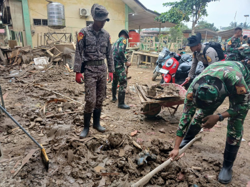 Kegiatan pembersihan difokuskan pada area luar sekolah, termasuk halaman dan lingkungan sekitar yang terdampak sisa lumpur serta material pascabanjir. Taruna Akademi TNI dan Kadet yang tergabung dalam Subsatgas 1/Macan melaksanakan kegiatan secara gotong royong guna memulihkan kebersihan dan kenyamanan lingkungan sekolah.