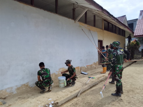 Subsatgas 2/Hiu Satgastar Latsitarda Nusantara ke-46 kembali melaksanakan kegiatan pengabdian kepada masyarakat melalui pengecatan di SD Negeri 1 Tualang Cut, Kecamatan Manyak Payed, Kabupaten Aceh Tamiang.