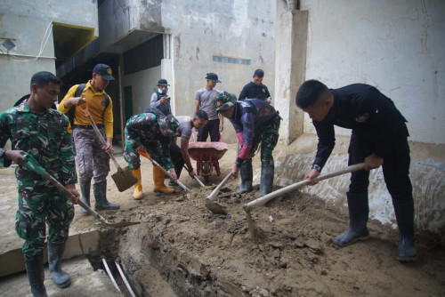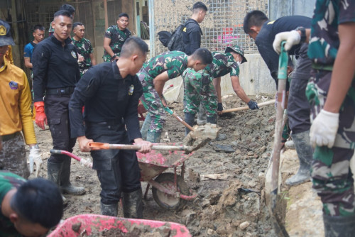 Taruna dan Kadet Subsatgas 4/Kijang pembersihan di Pasar Bawah Kualasimpang.
