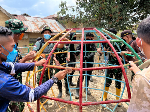 Taruna dan Kadet Subsatgas 4/Kijang pembersihan di TK Pelangi Anak