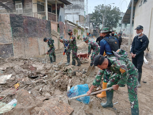 materil sisa lumpur di Dusun Amalia kota Kualasimpang, Aceh Tamiang. Kegiatan
