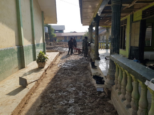 Pembersihan difokuskan pada area lingkungan sekolah yang terdampak kondisi pascabanjir, meliputi halaman dan fasilitas penunjang pendidikan. Taruna dan Kadet secara bergotong royong membersihkan sisa lumpur dan material lainnya guna memulihkan kebersihan serta kenyamanan lingkungan sekolah.