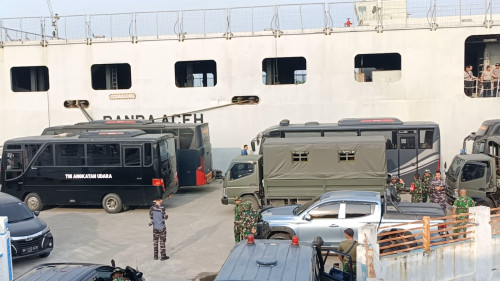tiba di Pelabuhan Belawan, Kamis (22/1/2026). Kedatangan pasukan tersebut