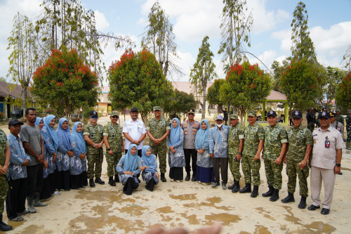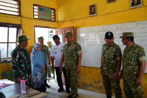 rombongan disambut antusias oleh para siswa. Wapang TNI meninjau sejumlah ruang