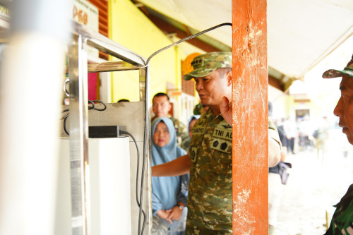 Di lokasi yang sama, Wapang TNI juga meninjau sarana Reverse Osmosis