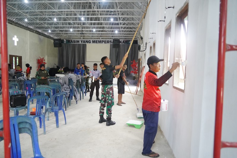 6. Melaksanakan Karya Bhakti Pengecatan Gereja, Masjid, Penyiapan material pengecoran jalan dan Pembersihan/ Clearing peningkatan jalan usaha Tani sasaran Kilat D ( Kec. Muara Kaman )