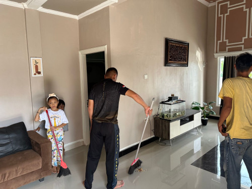 * Pelaksanaan pembersihan lingkungan rumah orang tua asuh masing masing