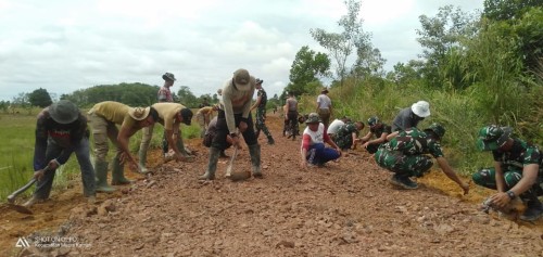 9. Melaksanakan Karya Bhakti Pengecatan Gereja, Masjid, Penyiapan material pengecoran jalan dan Pembersihan/ Clearing peningkatan jalan usaha Tani sasaran Kilat D ( Kec. Muara Kaman )