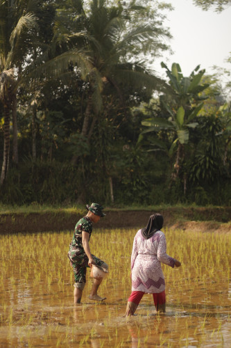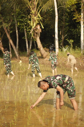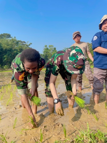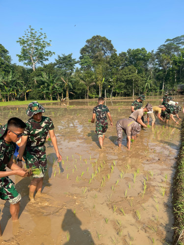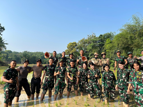 kontingen Latsitarda XLV 2025 yang tergabung dalam satlak Elang melaksanakan kegiatan di Desa Padasuka, Kab. Lebak, Banten. Dalam mewujudkan program ketahanan pangan nasional yang merupakan salah satu program kerja Bapak Presiden RI ke-8, dilaksanakan peninjauan sektor pertanian di lokasi perbatasan antara Desa Padasuka dan Cibeureum. Sektor pertanian menjadi fokus utama pemerintah dalam menjaga ketahanan pangan sebagai poros utama penggerak ekonomi negara. Para peserta Latsitarda XLV 2025 mendapatkan penyuluhan mengenai cara menanam padi, metode pengairan sawah, dan cara mengatasi keong mas sebagai hama tanaman padi. Keong mas masih menjadi salah satu hama tanaman padi. Perkembangan keong mas bisa mencapai hingga 300 hingga 500 keong mas. Dalam hal ini, para Taruna mendapatkan kesempatan untuk menyiapkan bibit padi untuk persemaian, kemudian menanam padi, dan pengambilan keong mas bersama warga. Kegiatan ini merupakan bentuk nyata dari kolaborasi antara generasi muda dan masyarakat sekitar dalam mewujudkan ketahanan pangan nasional. Kesempatan ini diharapkan mampu menambah wawasan dan pengalaman para peserta Latsitarda XLV 2025.