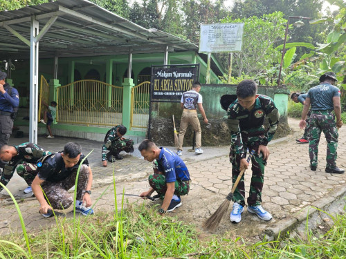 Pembersihan Makam Karamah Ki Arya Sintok yang dilakukan oleh para taruna Kompi A satlat hiu