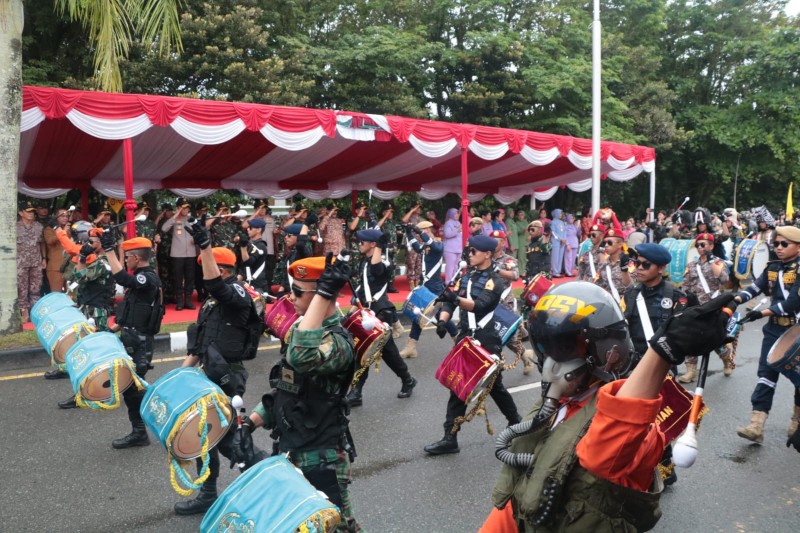 Upacara pembukaan Latsitardanus ke-44 tahun 2024 di Lapangan Merdeka, Balikpapan, Kalimantan Timur dilanjutkan dengan kegiatan defile serta drumband integrasi antara Akmil, AAL, AAU, AKPOL, IPDN, Poltek SSN, dan UNHAN.