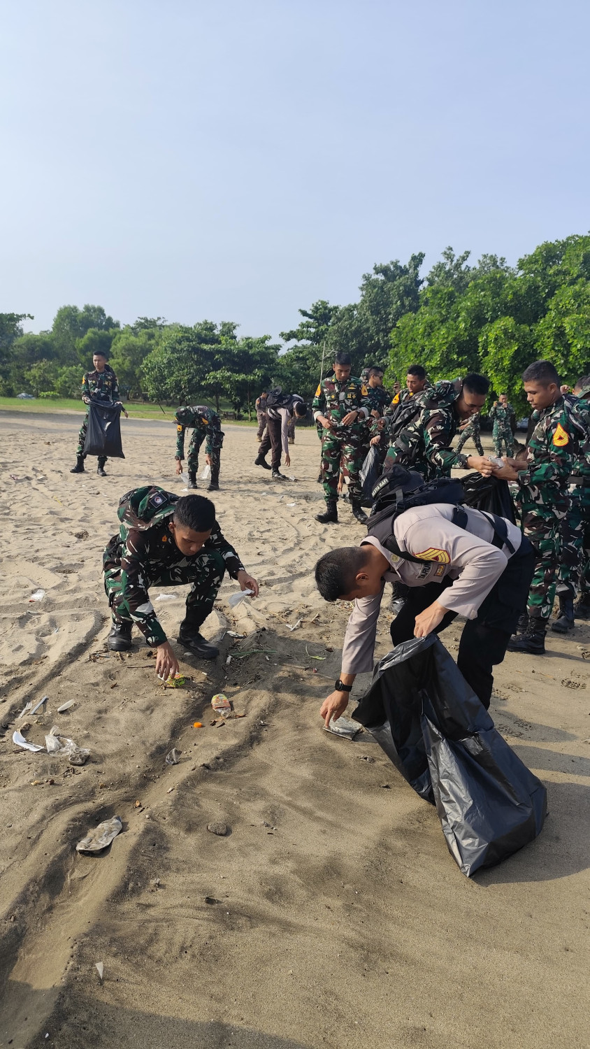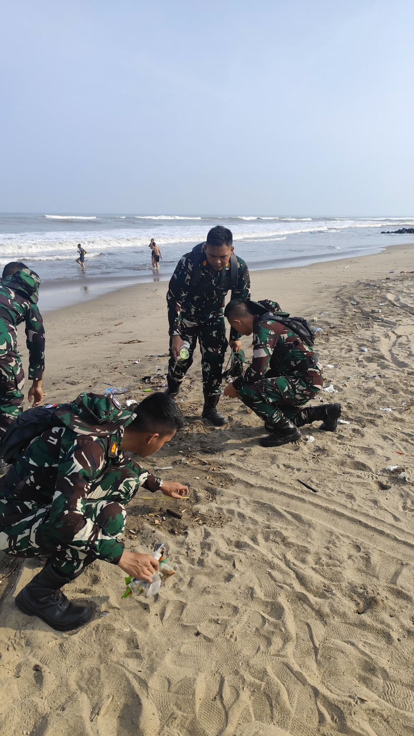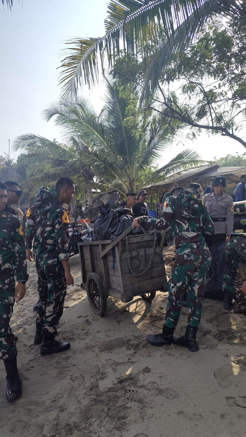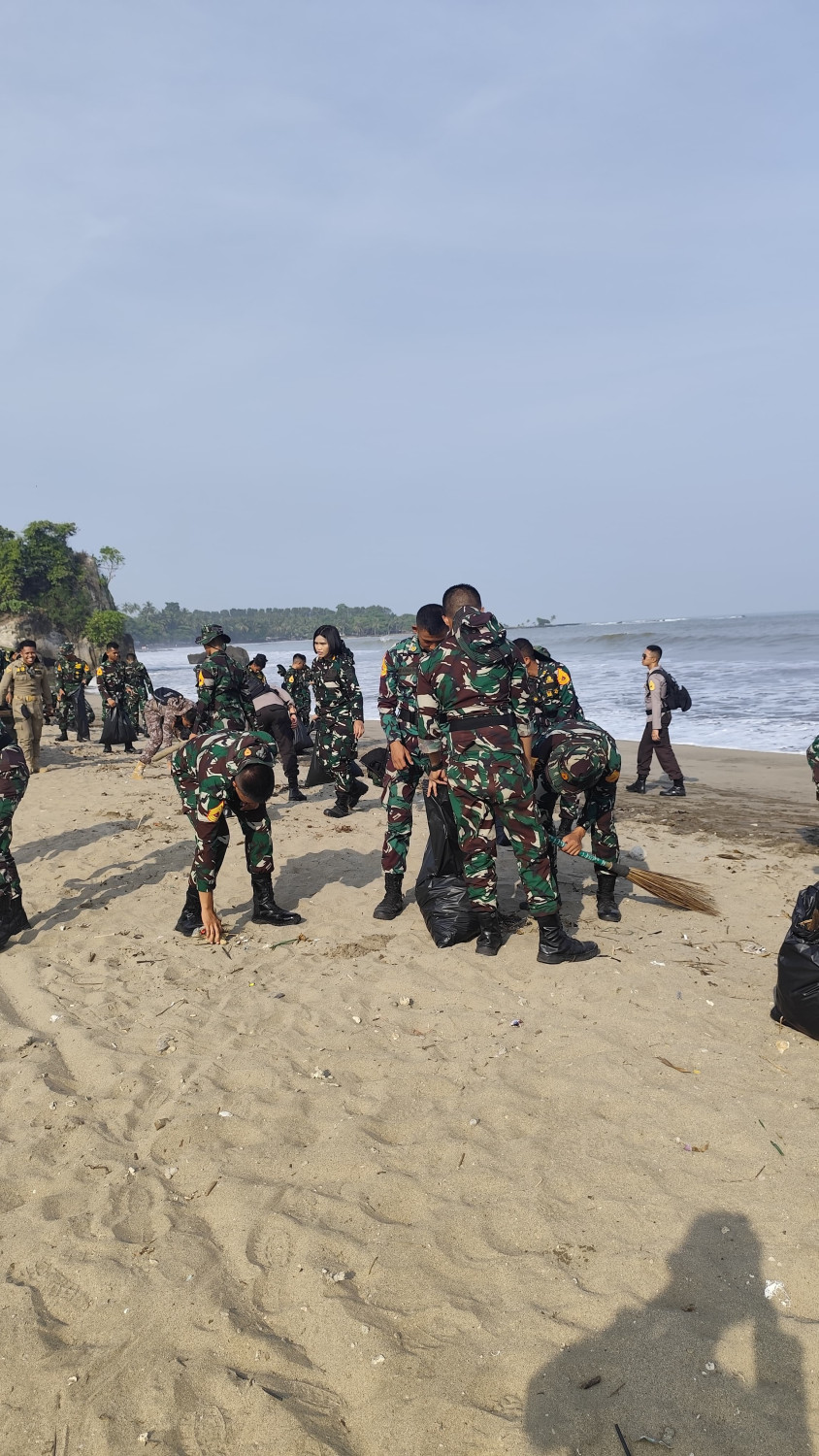 Taruna berpartisipasi dalam kegiatan pembersihan pantai di Batu saung