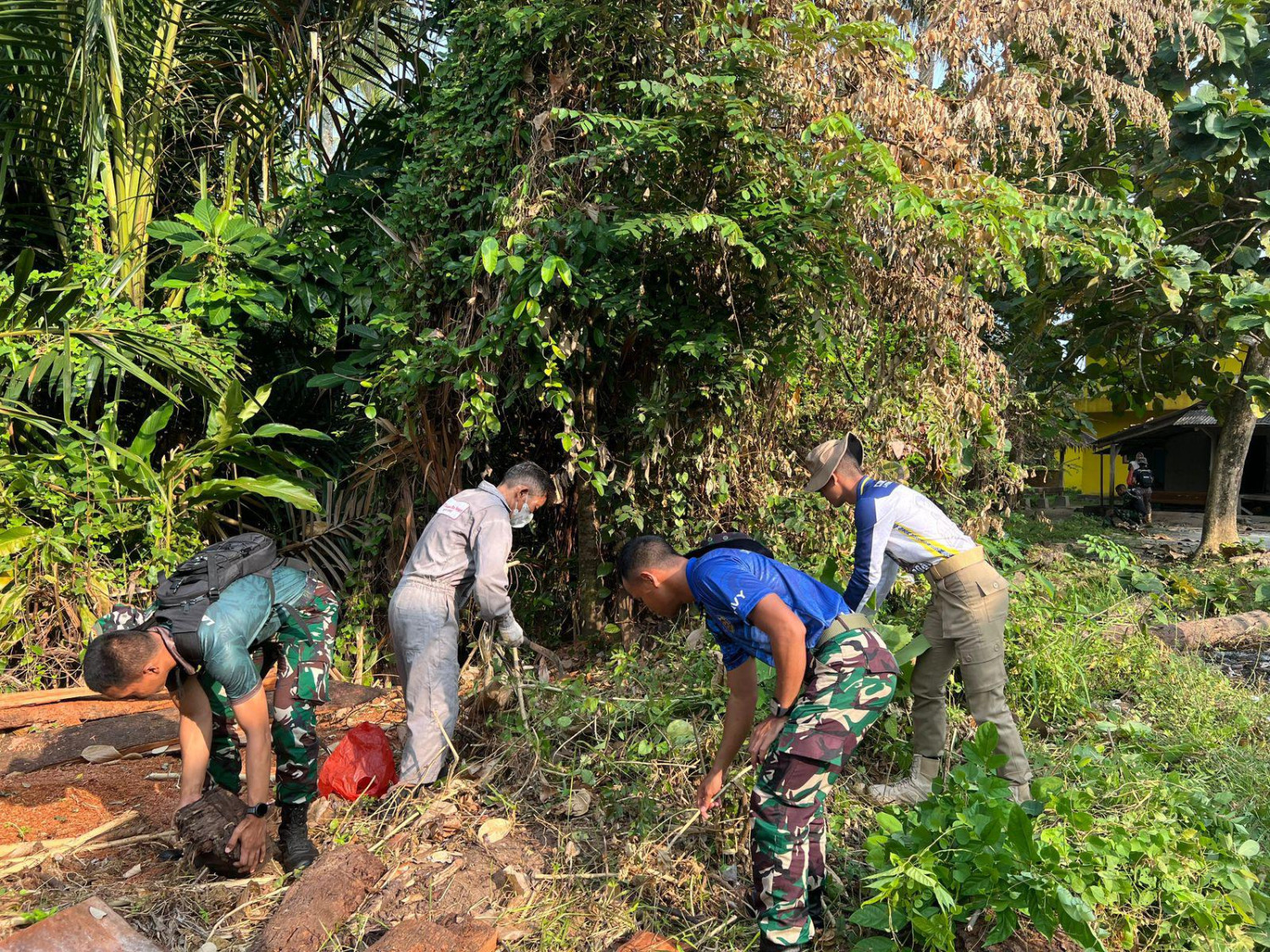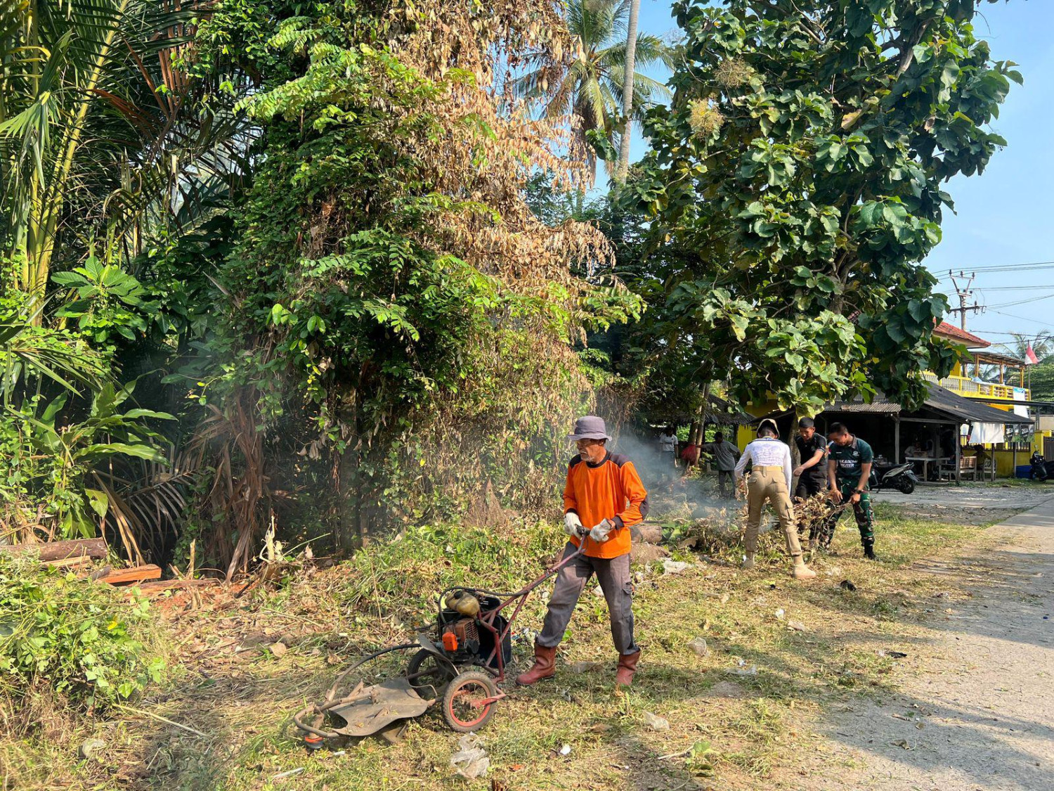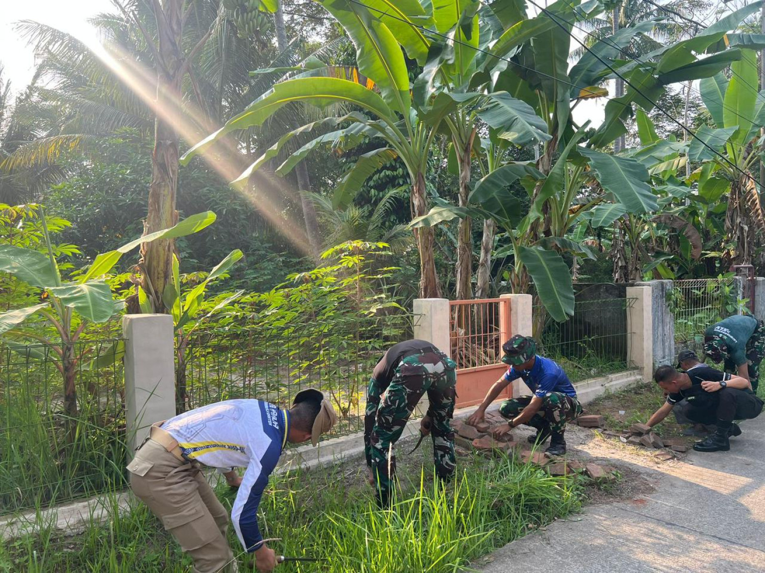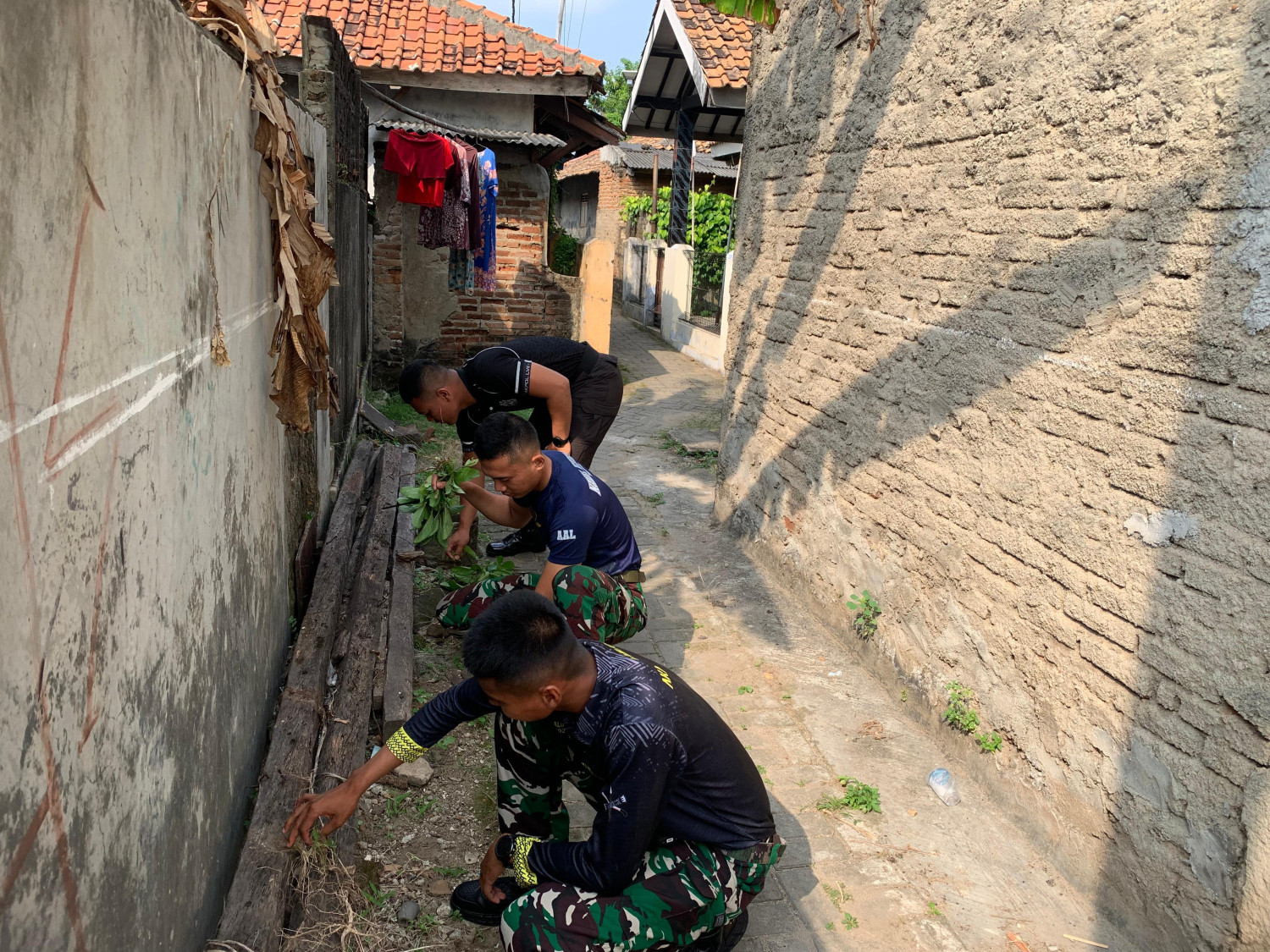 Taruna mengikuti giat bersama warga untuk membersihkan saluran selokan di Desa Mekarsari