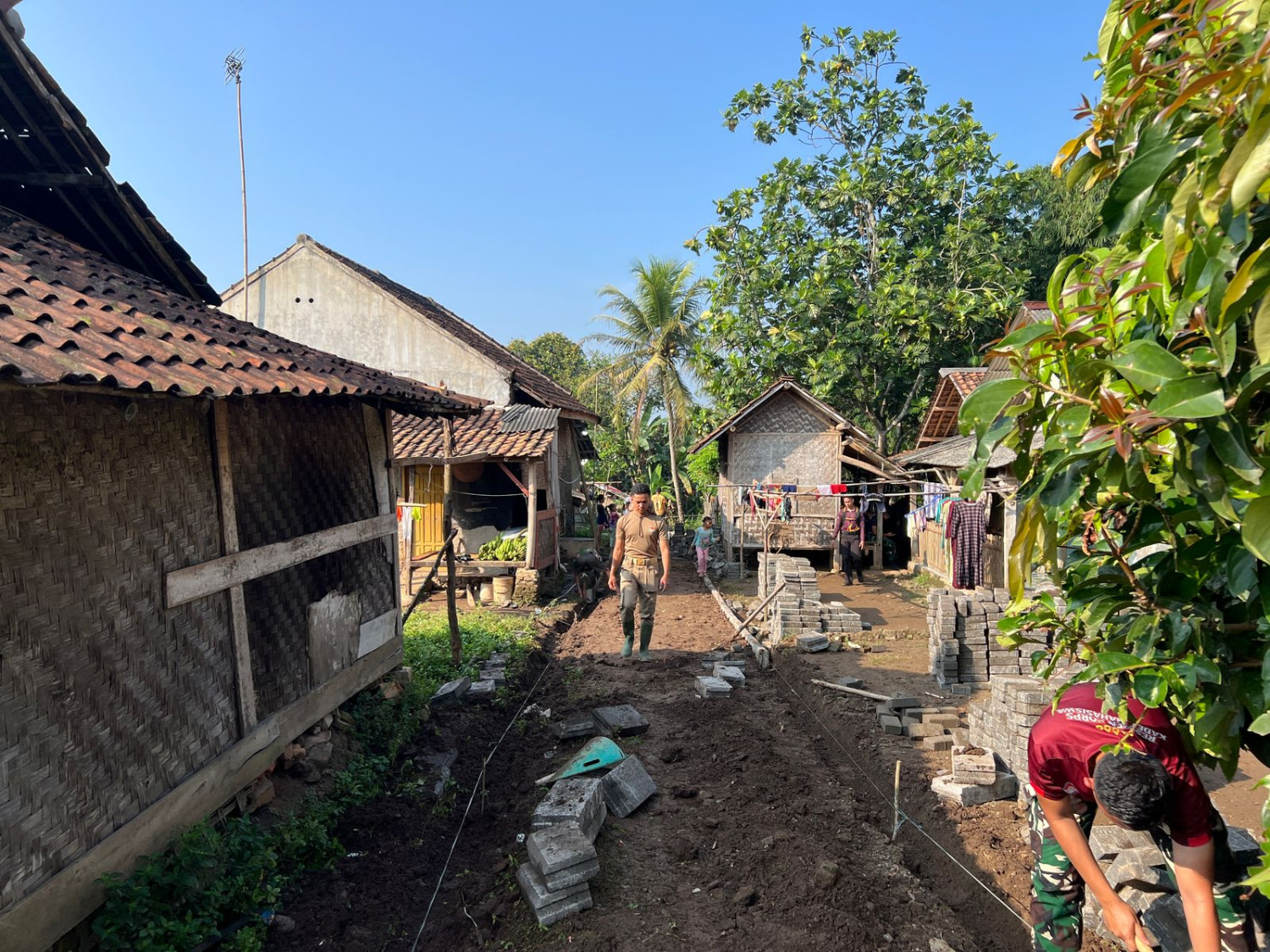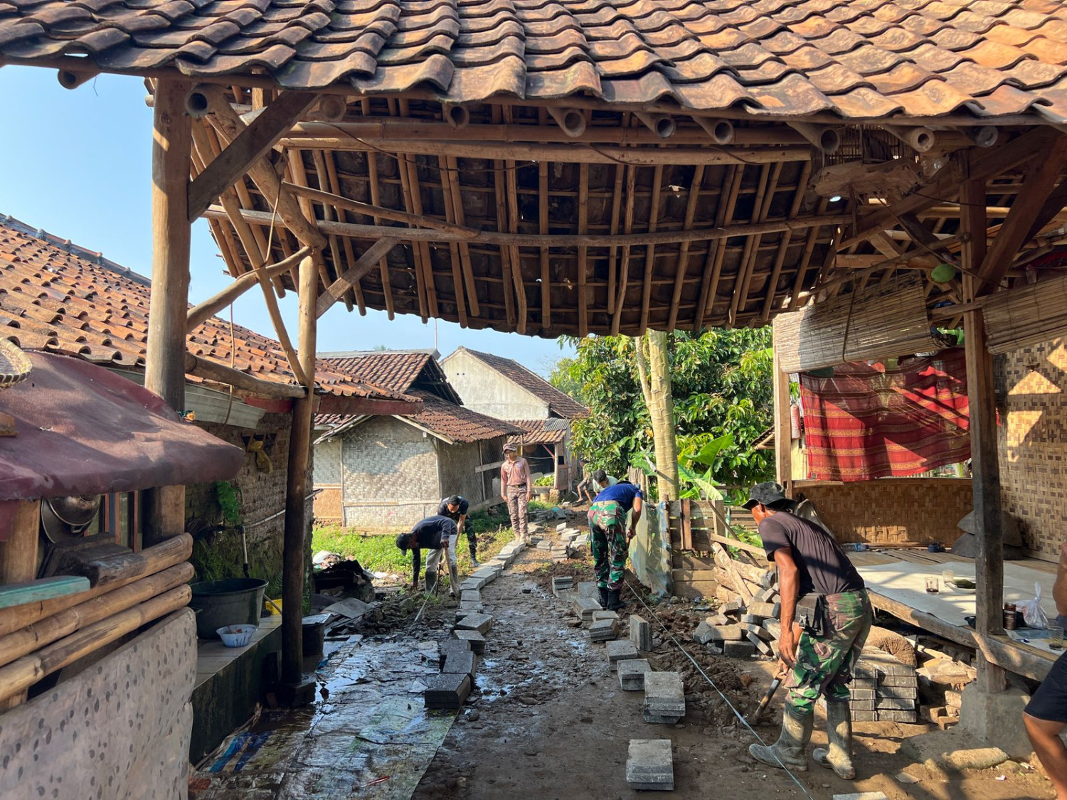 Taruna Kompi A Latsitardanus menunjukkan dedikasi dan semangat pengabdian nyata melalui kegiatan pemasangan paving block di Desa Sindangmulya. Dengan penuh semangat kebersamaan, para taruna turun langsung ke lapangan, bergotong royong bersama warga membangun akses jalan yang lebih baik dan nyaman untuk aktivitas sehari-hari masyarakat. Kegiatan ini bukan sekadar kerja fisik, melainkan wujud kepedulian dan rasa tanggung jawab generasi muda terhadap pembangunan desa dan peningkatan kualitas hidup rakyat. Setiap paving block yang dipasang mencerminkan nilai-nilai disiplin, kebersamaan, dan cinta tanah air yang tertanam kuat dalam jiwa para taruna. Antusiasme warga Desa Sindangmulya sangat terasa. Kehadiran para taruna disambut hangat, mempererat ikatan emosional antara aparat pertahanan negara dengan masyarakat yang dilayani. Kegiatan ini pun menjadi simbol sinergi nyata antara TNI, Polri, dan masyarakat sipil dalam membangun negeri dari pelosok. Mari kita terus dukung langkah-langkah kecil yang membawa perubahan besar. Karena dari desa, kita bangun Indonesia.