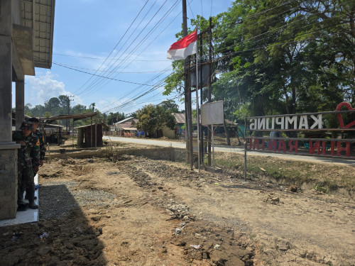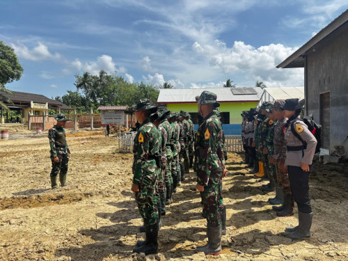 Subsatgas 1/Macan Satuan Tugas Taruna (Satgastar) Latsitarda Nusantara ke-46 melaksanakan kegiatan pembersihan di Kantor Desa Kebun Rantau, Kecamatan Rantau, Kabupaten Aceh Tamiang, sebagai bagian dari upaya pemulihan fasilitas pelayanan publik yang terdampak bencana alam.