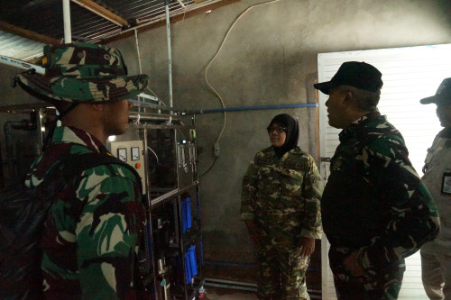Danjen Akademi TNI Bersama rektor Unhan RI meninjau langsung progres pembuatan RO atau penjernihan air bersih yang dikerjakan Taruna dan Kadet, serta berinteraksi dengan pengurus ponpes tersebut dan memastikan kegiatan Latsitarda Nusantara ke-46 benar-benar memberi manfaat nyata bagi warga setempat.