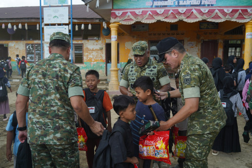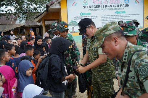 Kegiatan peninjauan diakhiri dengan penyerahan bantuan dari Wakasad bersama Asisten Perencanaan Umum (Asrenum) Panglima TNI kepada para siswa SD Negeri 1 Rantau Pauh sebagai bentuk kepedulian dan dukungan terhadap dunia pendidikan.