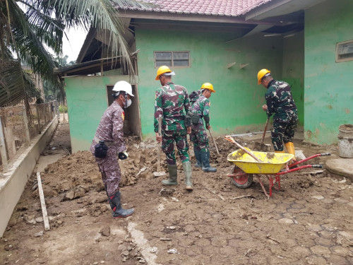 Kegiatan pembersihan ini difokuskan pada area halaman bangunan yang masih dipenuhi tumpukan sisa lumpur mengeras akibat banjir. Taruna dan Kadet bekerja secara bergotong royong mengeruk, mengangkat, dan membersihkan sisa material lumpur guna memulihkan fungsi fasilitas pelayanan kesehatan tersebut.