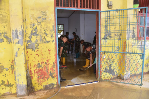 Taruna dan Kadet yang tergabung dalam Subsatgas 2/Hiu Satuan Tugas Taruna (Satgastar) Latsitarda Nusantara ke-46 kembali melaksanakan kegiatan pembersihan di SMP Negeri 1 Manyak Payed, Kabupaten Aceh Tamiang.