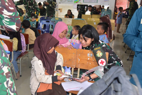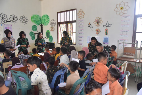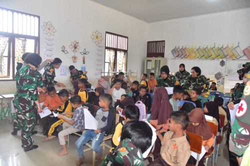 Taruna dan Kadet yang tergabung dalam Subsatgas 2/Hiu Satuan Tugas Taruna (Satgastar) Latsitarda Nusantara ke-46 kembali melaksanakan kegiatan trauma healing di SD Negeri 1 Tualang Cut, Kabupaten Aceh Tamiang.