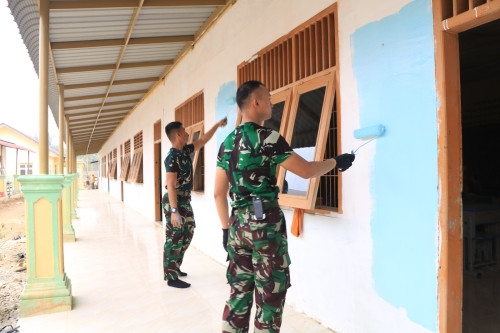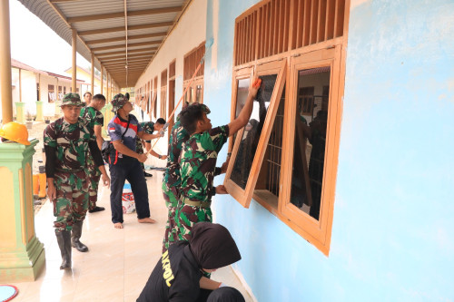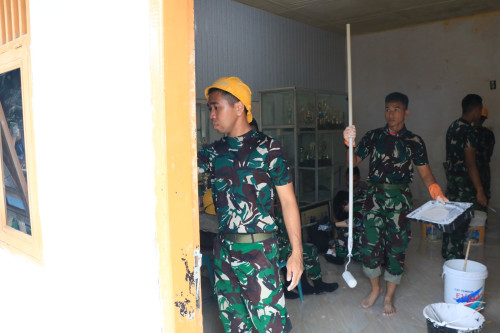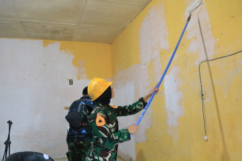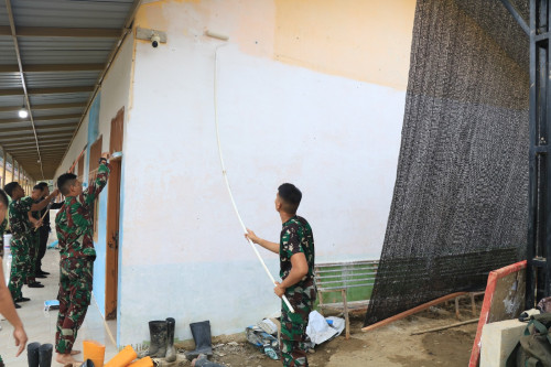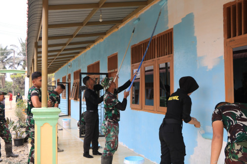 Taruna dan Kadet yang tergabung dalam Subsatgas 3/Elang Satuan Tugas Taruna (Satgastar) Latsitarda Nusantara ke-46 kembali melaksanakan kegiatan pembersihan dan pengecatan di MTs Al Ikhlas Tanah Terban, Desa Tanah Terban, Kecamatan Karang Baru, Kabupaten Aceh Tamiang.