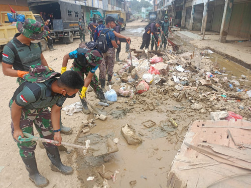 Taruna dan Kadet yang tergabung dalam Subsatgas 4/Kijang Satuan Tugas Taruna (Satgastar) Latsitarda Nusantara ke-46 kembali melaksanakan kegiatan pembersihan fasilitas umum di Panglima Polem, Kualasimpang, Kabupaten Aceh Tamiang.